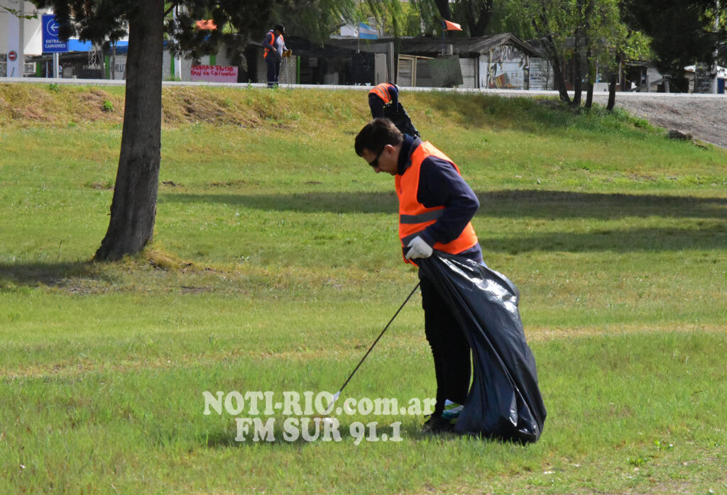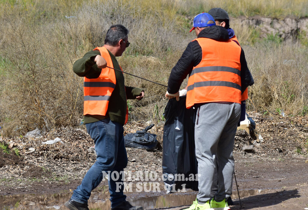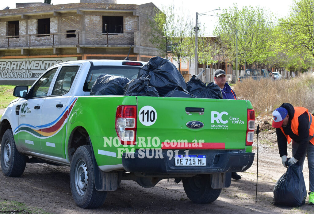 En esta oportunidad, el punto elegido fue el ingreso a la localidad, a la vera de la Ruta Nacional 22, un lugar clave por su visibilidad y por ser la primera imagen que reciben quienes visitan o atraviesan la ciudad. Funcionarios municipales y algunos vecinos dedicaron varias horas a limpiar el sector, recolectando decenas de bolsas con residuos de todo tipo que luego fueron trasladadas al basurero local.
