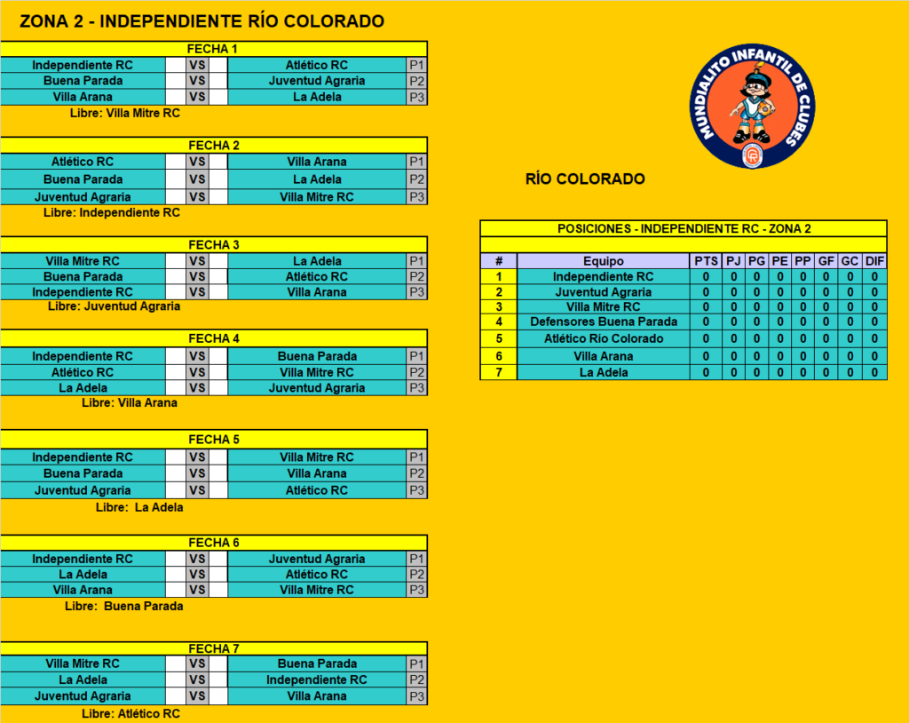 Fixture Completo: Categoría 2013 – Sede Río Colorado