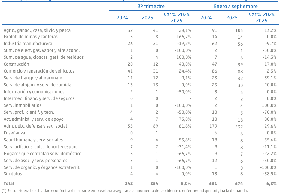 Aun así, el volumen de litigios resulta bajo si se lo compara con la magnitud de los siniestros laborales. En 2024, las unidades productivas empleaban a 211.754 trabajadores y registraron 8.823 accidentes de trabajo o enfermedades profesionales con días de baja.