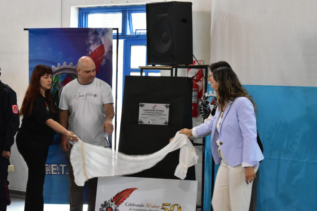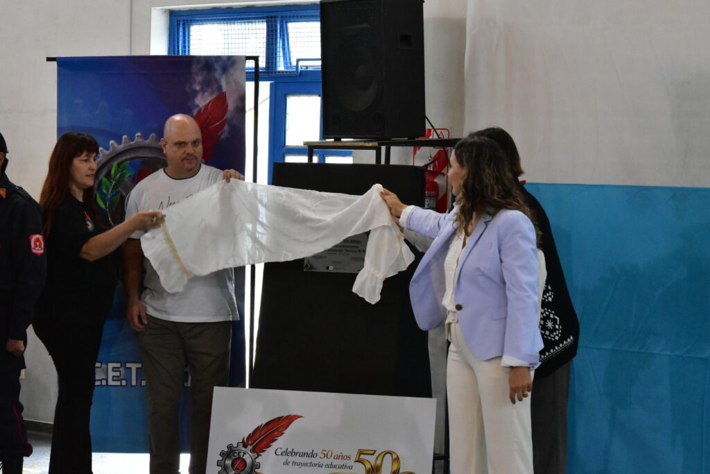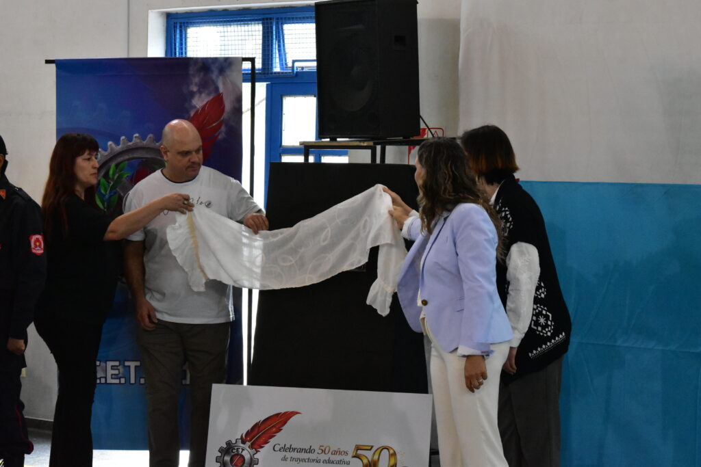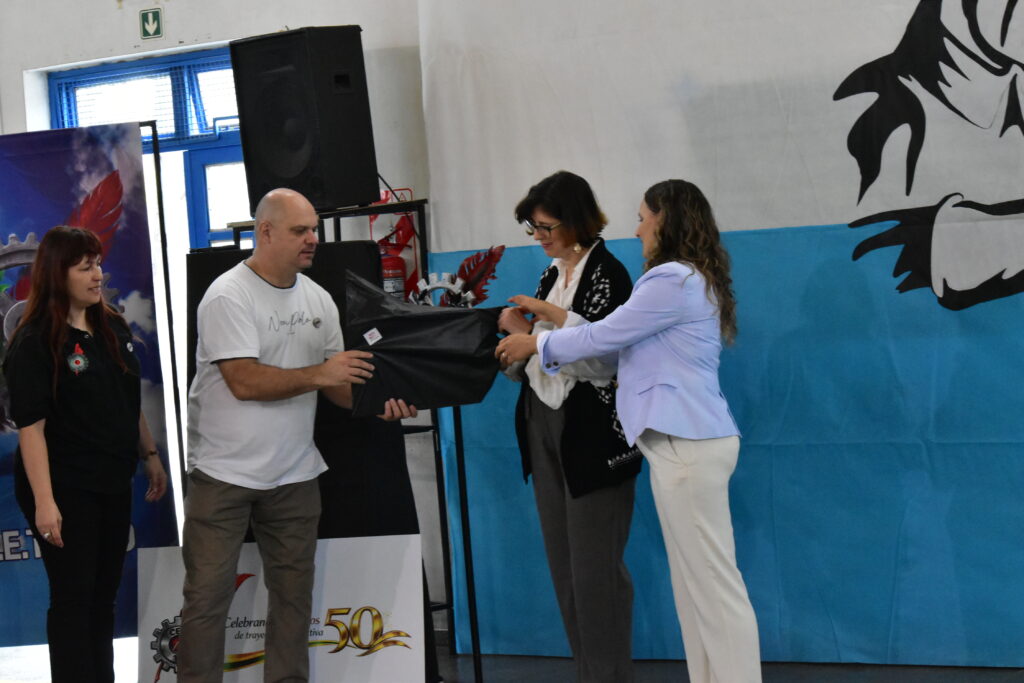 Uno de los momentos más significativos del acto fue el descubrimiento de una placa conmemorativa por los 50 años, acompañada por otra entregada por el gremio Unter.