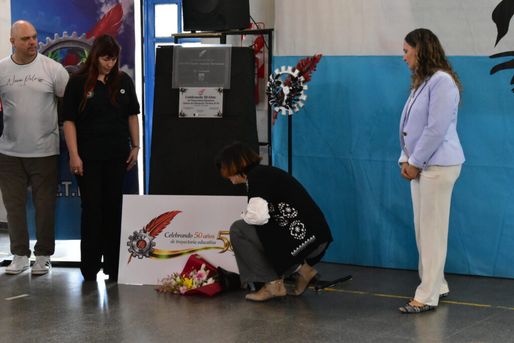 Además, se realizó un emotivo homenaje a quienes ya no están en vida: en un gesto simbólico, se colocó un ramo de flores al pie de la placa en memoria de todas las personas que dejaron su huella en la institución.